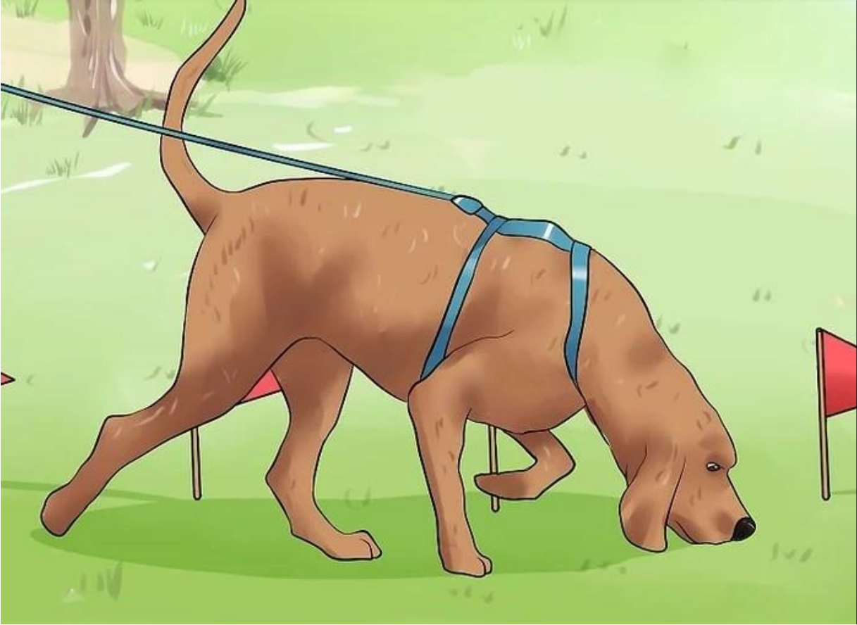 Il suit une odeur, l’odeur laissée par le traceur (personne qui fait la piste), car toute personne, lorsqu’elle marche, dépose d’infimes molécules olfactives que le chien peut sentir. Attention, le chien doit suivre le plus fidèlement le parcours de la piste, sinon il y a pénalités de points